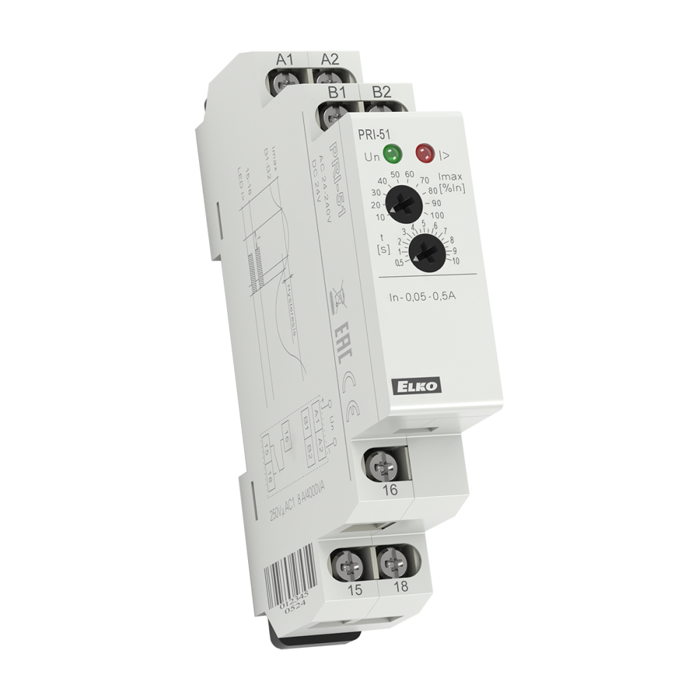 Prúdové kontrolné relé PRI-51/0,5, (napáj. galvanicky odelené od mer. prúdu)