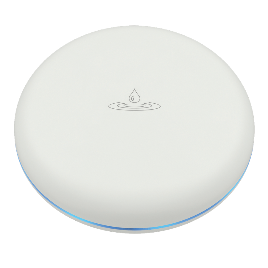 - Záplavový detektor slúži k detekcii úniku vody – k aktivácii prichádza v momente zaplavenia kontaktov umiestených na spodnej strane detektoru.